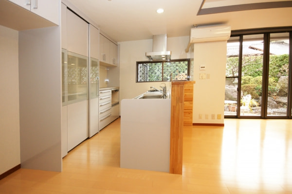 1階部分は、将来の介護の事を想定し、和室の押し入れを取り払いトイレを新設しました、冬場に快適に過ごせるよう、LDKに温水床暖房を設置。システムキッチンは対面キッチンへ変更し、対話しながらの調理が可能となりました。食品庫が欲しいとの事で、増設して設置しました。リビングと隣合わせにあった和室は洋室へ。タイル貼りの浴室は冬でも暖かい断熱システムバスへ。トイレは小便器付でしたが、小便器を撤去し、タンクレス便器と手摺りを取付け、バリアフリー仕様へ。2階についても、床暖房設置、シャワールームの新設、ミニキッチンの設置を行い、プライベートの確保にも配慮したリフォームになりました。