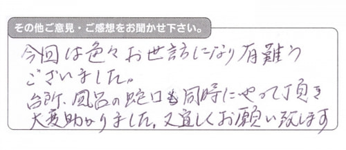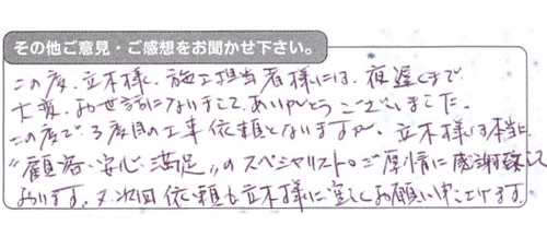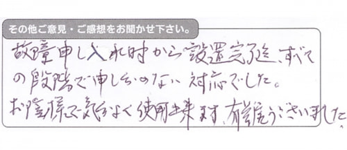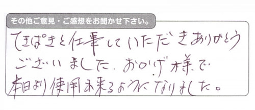 ご利用頂いたお客様から当社のご意見・感想が届きました。