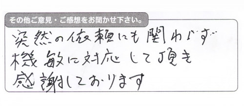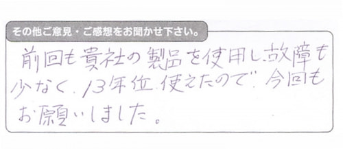 ご利用頂いたお客様から当社のご意見・感想が届きました。
