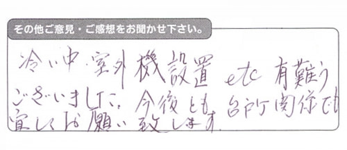 ご利用頂いたお客様から当社のご意見・感想が届きました。