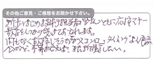 厳しいお言葉を頂戴しました内容につきましては、今後の改善課題として受け止め努力させていただきます。