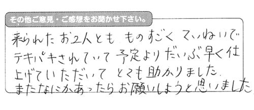 ご利用頂いたお客様から当社のご意見・感想が届きました。
